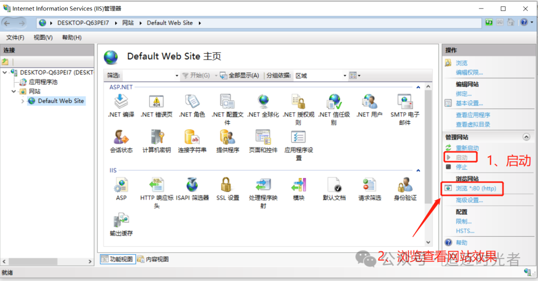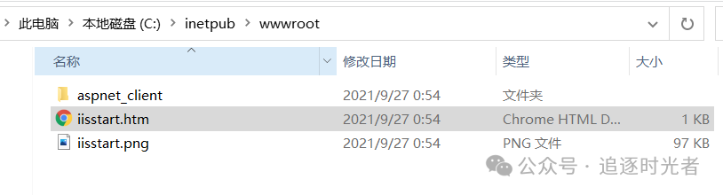 • 在C:\inetpub\wwwroot下IIS默认绑定了一个80端口的静态页面站点,我们将该站点浏览起来查看页面效果是否正常。