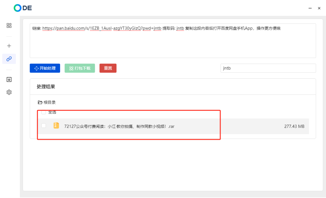 首先,我们只需将下载链接复制到软件中,然后点击“开始处理”按钮,软件会自动解析链接。