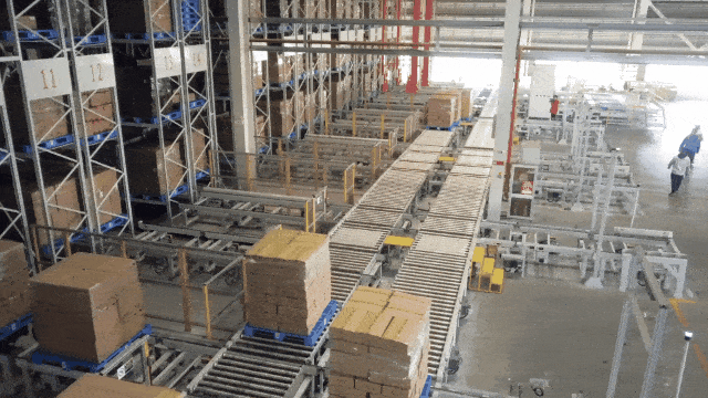 穿梭式货架是由货架、穿梭台以及叉车组成完整的高密度存储系统,这种高效率的存储方式为提高仓库空间利用率。 1、工作原理: 1)具有先进先出、先进后出便捷存取货物功能。 2)通过叉车可将穿梭台车放置于不同巷道,多个巷道可以共用一部穿梭车。穿梭车的数量由巷道深度、货物总量、出货批量、出货频率等综合因素决定。 2、穿梭式货架特点:极高的空间利用率,自动存取货时叉车效率的2-3倍,无需人员在货架区作业,货架存储港道越长越凸显优势,对货物实现先进先出管理。穿梭车可以对每个港道中的托盘进行盘点,可以让仓储人员更快捷的了解存储量,合适多品种、多批量。 1)存货:存货时叉车将货物放在货架港道导轨的最前端,通过无线电遥控操作的穿梭台车,可以承载托盘货架在导轨上运行; 2)取货:取货时通过穿梭台车将货架深处的托盘移动至货架最前端,用叉车将托盘货架从货架上取下。 3)拣选:利用穿梭式仓储系统的优势,大大增加一层拣选区的存储数量,作业频次和工作负荷降低,效率提高。 3、适用各种行业:食品、医药、日化用品、化工行业、加工制造、汽配、服装纺织、家电家具行业、物流仓储、冷库冷链、印刷包装行业、电子商务行业等。具体如下:1)多量少样:食品、饮品、化工、烟草等单品种批量大,品项相对单一的行业。 2)冷库作业:减少低温作业时间,提高工作效率和作业安全性。 3)期限管理:对物品批次有严格要求,需要先进先出作业管理的仓库。 4)增加库容:存储空间有限,需要最大化利用空间的仓库。 03 穿梭车 穿梭式货架系统是由货架、台车以及叉车组成的高密度储存系统。台车即穿梭车。穿梭车的类型如下: 1、子母穿梭车:主要由横向的子穿梭车和纵向的母穿梭车及其轨道组成,可与往复升降机、换层提升机、出库输送线、入库输送线、计算机控制系统搭配使用。 特点:在工作中,子母穿梭车的母车牵引着一系列的子车在仓库的主干道上面行驶。当到达某一个特定的支道的时候,子车可以自动释放,然后自主运行到支道上面进行作业。母车在这个过程中继续向前行驶,这样就在无形中节约了不少的时间,大大加快了作业的速度。 2、四向穿梭车:是指能在平面内四个方向(前、后、左、右)穿梭运行的存储机器人,主要是区别于传统的两向穿梭车(前进和后退)而言的。 特点:在工作原理上,四向穿梭车一般具有两套轮系,其一套负责X方向行走,另一套负责Y方向行走。小车在轨道上运行,遇到转弯处,是通过更换轮系来完成的。 因此,货物单元的方向在整个作业时间内是不变的。当小车要变化层时,大多数是通过巷道外的提升机来完成。小车自动驶入提升机后,提升机提升到所需要的楼层,就完成了换层。 一般穿梭车技术参数(供参考): 1)载 重:1000~1500kg 2)运行速度:空载0.7-0.9米/秒 3)运行速度:满载0.6-0.8米/秒 4)额定电压:24V 5)电池续航:正常使用时间大于8小时 6)感应范围:遥控器感应范围50米(理论上100米,最大可到200米,但取决于现场环境) 04 码盘机&拆盘机 1、码盘机是将输送线上的空托盘自动码垛然后输送进库内进行存储的一种设备。将托盘自动堆成一垛(一般6-10个),通常8个左右为一组(与货物高度相当),在系统的调配下码盘机自动码盘,空托盘堆叠到设定数量后自动输送走,最终由堆垛机放入库内。 2、拆盘机是将输送线上的码垛好的空托盘自动拆分的一种设备。一般与码盘机成对使用也可单独使用,在系统的调配下拆盘机自动拆盘,拆出的空托盘自动输送到所需位置。一组托盘拆完后会自动输送下一组空托盘。 码/拆盘机产品特征: 1)码盘机/拆盘机需布置在输送线上; 2)需要码垛/拆垛的托盘大小高度相同,外形相差在标准范围内; 3)需要码垛/拆垛的托盘至少有两面可以进叉; 4)码盘机/拆盘机动力可采用电动或气动。 05 顶升移载机 顶升移载机是自动化立体仓库一般用于改变物品的输送方向,将物品从叉道送入或移出主输送线。 顶升移载机:具有承载大,结构简单,稳定可靠的特点。在辊道输送机,链条输送机中,对于分拣速度小于30件/分钟,但单件物品重量大于2000kg的物品,首选顶升移载机。 06 码垛机器人 码垛机器人是将已装入容器的纸箱,按一定排列码放在托盘、栈板(木质、塑胶)上,进行自动堆码,可堆码多层,然后推出,便于叉车运至仓库储存。 升降机能够带着货物在Z轴方向上实现位置的转移,由于其是靠液压泵站来驱动的,故也可被称作液压升降货梯。它主要用于中高空货物的上下运输。 08 信息采集设备 在立体仓库中,需要对入库、拣货、出库等各个环节货物进行采集信息。条码阅读器:用于读取货物的条形码信息,实现快速识别和跟踪。