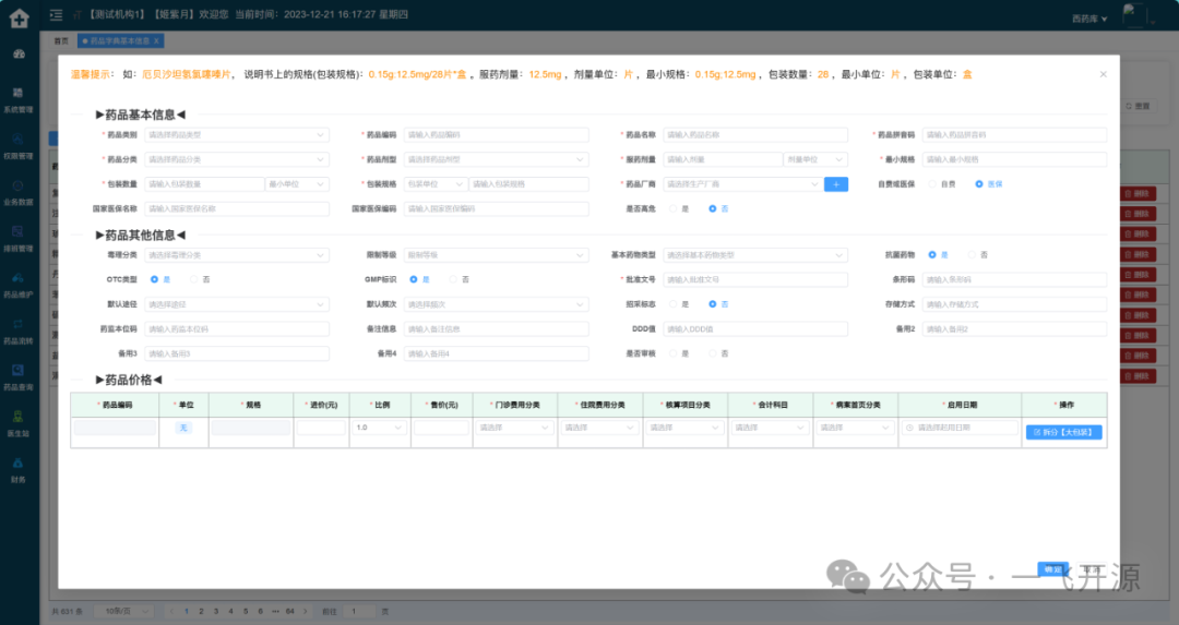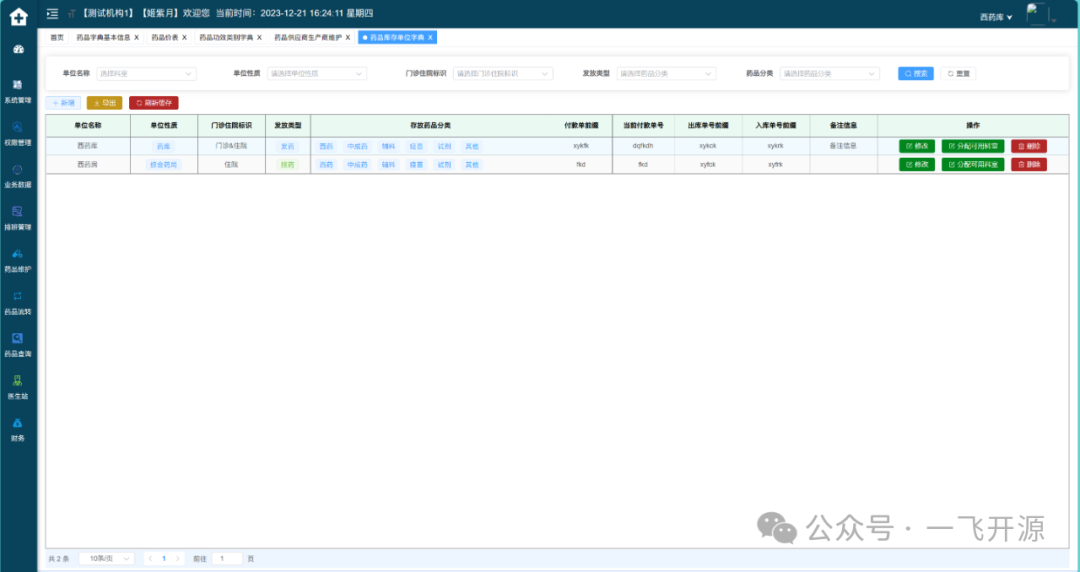 药品维护(药品字典维护、价表维护、功效类别维护、供应商厂商维护、出入库字典维护、厨房权限配置、库存字典维护)