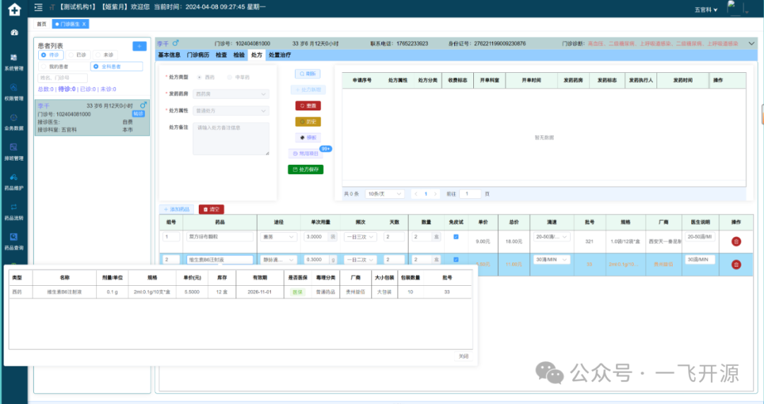 一款医院HIS系统,支持多机构,微服务架构、支持分布式事务、分布式锁,后端springcloud+nacos+pgsql,配前台vue3+ts+elmentplus,代码切换到 dev-pgsql 分支为最新。