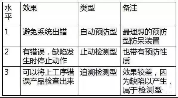 丰田公司能达到如此效果,防呆防错Poka Yoke起到了举足轻重的作用。 在作业过程中,作业者不时会因疏漏或遗忘而发生作业失误,由此所致的问题所占的比例很大,如果能够用防呆法防止此类失误的发生,则质量水平和作业效率必会大幅提高。 ① 防呆法意味着“第一次把事情做好”。 ② 防呆法意味着“有人为疏忽或者外行人来做也不会出错即不需要专门的经验或特别注意”的制程“傻瓜化”。 ③ 提升产品质量,减少由于检查而导致的浪费、消除返工及其引起的浪费。 ④ 实现自动化,提高效率。 ⑤ 保证安全。 四种防呆模式 ① 有形防呆 ② 有序防呆 ③ 编组和计数式防呆 ④ 信息加强防呆 ① 轻松原则 ② 简单原则 ③ 安全原则 ④ 自动化原则 例: ![]() (1).用排除的方法来达成。 (2).用“不对称的形状”来达成。 (3).用“同步原则”多动作需共同执行才能完成。 (4).用“顺序”动作来完成。 (5).极限定位原理。 隔离原则防呆 警告原则防呆 关于防呆,应树立以下观念: ① 自检和互检是最基础、最原始,但颇为有效的防错方法。 ② 防错装置并不需要大量的资源投入或很高的技术水平。 ③ 任一作业或交易过程均可通过预先设计时加入防错技术而防止人为失误。 ④ 通过持续过程改善和防錯,零缺陷是可以实现的。 ⑤ 防错应立足于预防,在设计伊始即应考虑各过程操作时的防错方法。 ⑥ 在所有可能产生问题的场所均考虑防错方法。 秉承以上观念去进行过程管理,可以使防呆法有效实施。 防呆法实施的一般步骤: (1)确定产品/服务缺陷并收集数据; (2)追溯缺陷的发现工序和产生工序; (3)确认缺陷产生工序的作业指导书; (4)确认实际作业过程与作业指导书之间的差异; (5)确认工序是否存在以下问题; (6)分析缺陷原因; (7)分析作业失误原因; (8)设计防错装置或防错程序以预防或检测同类失误; (9)确认防错效果,必要时进行过程调整; (10)持续控制及改善。 例1、电动工具包装防呆装置 ![]() 例2、手机壳生产混穴的防呆改善 ![]() 问题点 :1#,2#混装 ![]() 解决措施:改变流程,每人只负责一个穴号的产品并定好产品的摆放区域。 该文章在 2024/9/4 15:29:47 编辑过 |