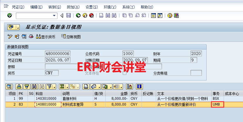 大家有没有遇见这种情况,MM01创建物料主数据之后,发现价格错了,想要更改,但是MM02进去价格却是灰色的,更改不了,根本改不了! 别着急,虽然MM02不能更改价格,但是我们可以通过MR21更改物料价格。 本文介绍MR21更改物料价格,菜单路径如下。 MR21更改价格之前,MM03查看物料1010000043的计价方式为移动平均价,价格为410.00,存货总价值为328,000.00 。 接下来,MR21将物料价格更改为400.00, 输入更改描述后,回车进入到价格更改界面, 输入物料号、新价格后,保存即可。说明:此界面中,可以一次更改多个物料的价格。完成更改后,MM03再次查看物料价格如下, 物料价格为400.00,存货价价值为320,000.00,相对于更改之前减少了8,000.00,这部分价值去哪儿了呢? CKM3查看物料的价格历史记录如下, 双击查看价格更改凭证如下, 点击“会计凭证”查看价格变更对应的财务凭证如下, 凭证分录为“借:材料成本差异;贷:直接材料”,存货价值减少,对方科目为材料成本差异。事实上,对方科目是后台配置的,也可以直接配置为损益类科目。 一般情况下,V价的物料价格实时更新,无需MR21进行调整(除非要人为调整库存价值)。对于S价的物料,当差异较大时,可以通过MR21调整价格。如果S价的物料存在标准成本估算(半成品/产成品),则不允许通过MR21更改价格。 对物料3010000003更改标准价格时,提示如下信息。 提醒:工厂启用Material Ledger之前,可以随时通过MR21更改物料价格。启用ML之后,对于ECC版本,S价物料一个月只能更改一次标准价,一旦新的价格生效后,当前期间就不允许再次更改价格。 点晴模切ERP更多信息:http://moqie.clicksun.cn,联系电话:4001861886 该文章在 2024/9/10 11:42:18 编辑过 |