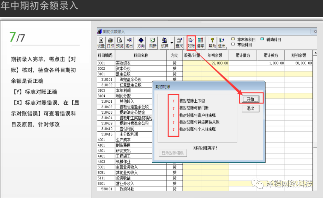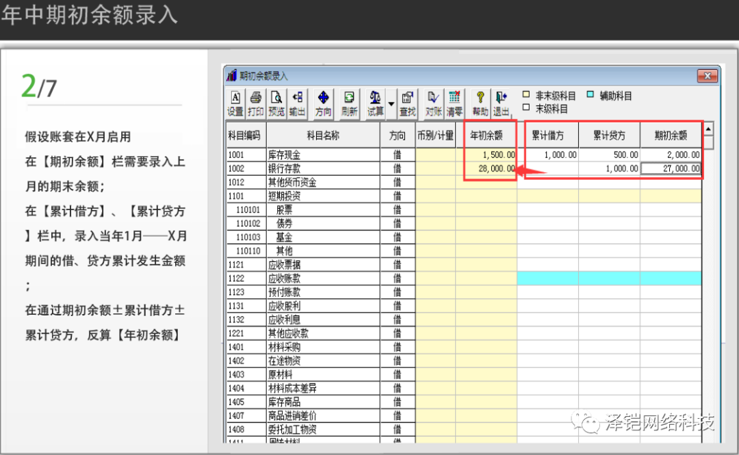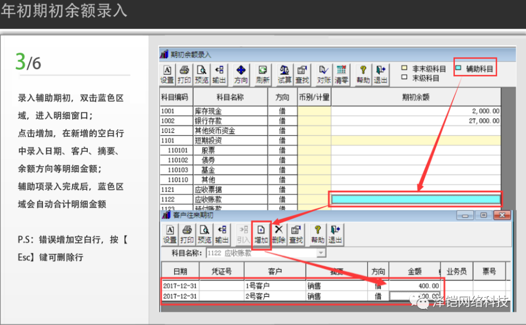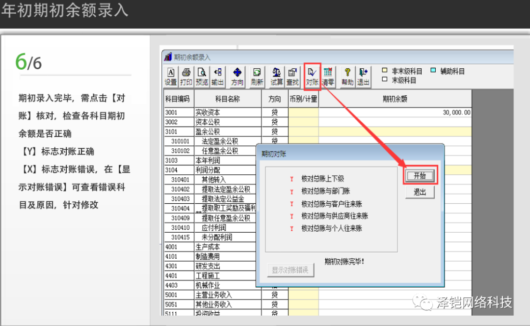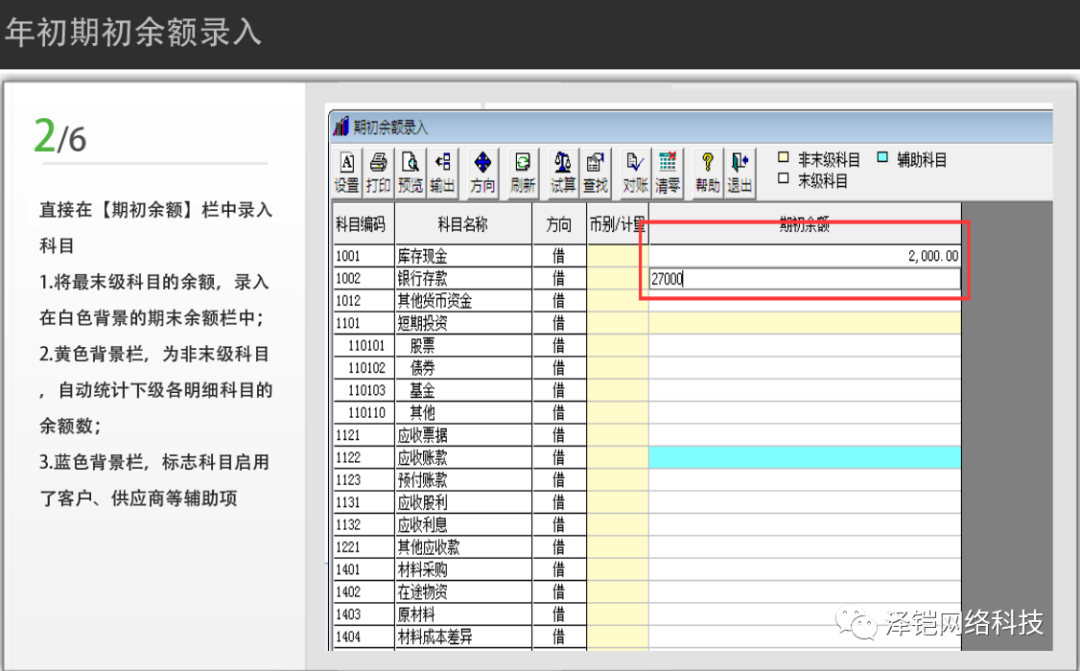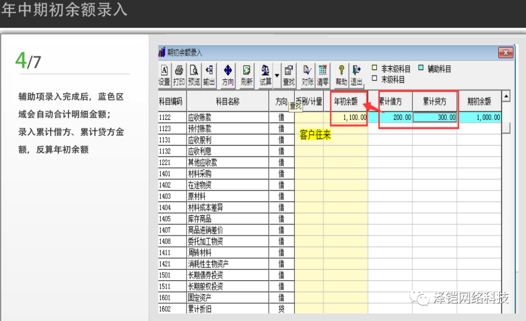 依次点击【总账】--【设置】--【期初余额】,将科目余额录入到相应的会计科目中。 注意:如果年中启用账套,涉及到本期间发生的累计借贷方数据可选择性录入,但是损益类科目需要录入累计借贷方,如果不录入的话,后期利润表的累计发生数就会取不到。 本文以用友T6软件建立账套,会计制度选择2013小企业会计准则为例: 一、年初启用账套期初余额录入: ![]() ![]() ![]() ![]() ![]() ![]() 二、年中启用账套期初余额录入: ![]() ![]() ![]() ![]() ![]() ![]() ![]() 备注:年中建账科目期初要录入累计借方金额、累计贷方金额和期初余额(上月期末余额),年初余额(损益类科目除外)会自动反算。 该文章在 2024/9/10 12:12:23 编辑过 |