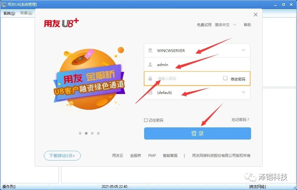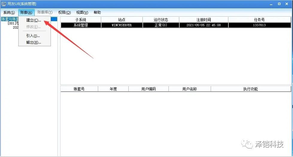 一、双击桌面系统管理,以admin登录系统管理 。 二、点击账套-建立 :
