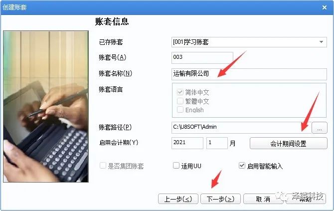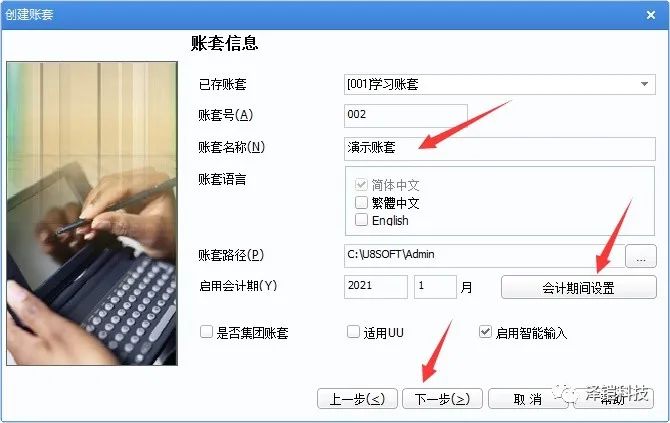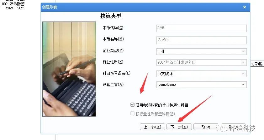 本币代码和本币名称、企业类型一旦选择,建账后均不可修改,故注意选择正确。
