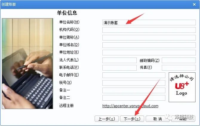 单位名称必填,其他项根据实际情况选择性填写。右下角可以设置公司logo。