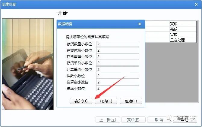 建账至最后一个阶段,系统自动会弹出编码方案界面和数据精度界面 。