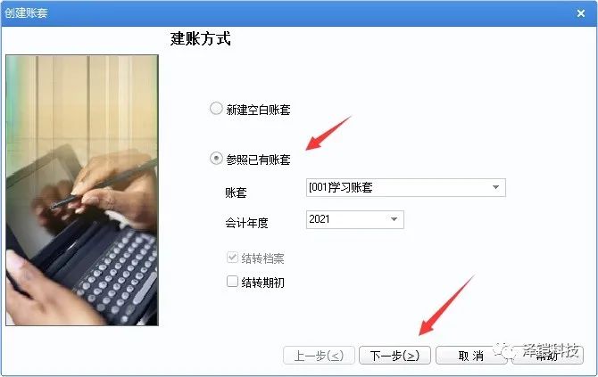 (三)如果是需要建立一个新年度账套,同时需要上年度的期末数,则可以选择参照建账,勾选结转期初,并注意上年度应该是已经结账状态。