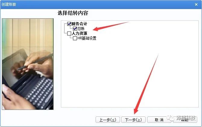 c)结转档案:默认必选,不可取消,表示参照建账时来源账套的基础档案自动复制到新建账套中。