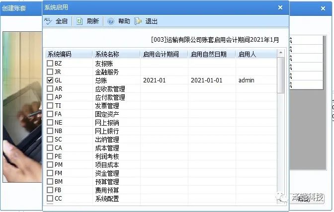 接下来,可以进行系统启用,如果此时不确定,建议登入账套后再进行系统的启用。