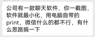 前几天,有小伙伴反映:他手里有个聊天软件,每次一截图,聊天窗口就不见了,甚至按键盘上的PrtSc截图键截下来都没有这个聊天窗口的内容,他想尽各种办法,就是截不了这个软件的图。