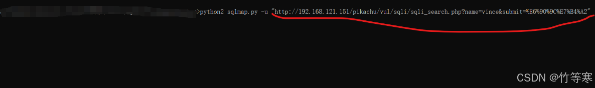 执行命令:python2 sqlmap.py -u "http://192.168.121.151/pikachu/vul/sqli/sqli_search.php?name=vince&submit=%E6%90%9C%E7%B4%A2"