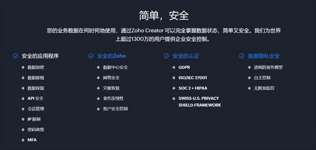 3、内置安全性:在低代码平台上运行的所有应用都会自动继承最新的安全保护、审计日志、用户控制和自动威胁评估,确保数据安全无虞。