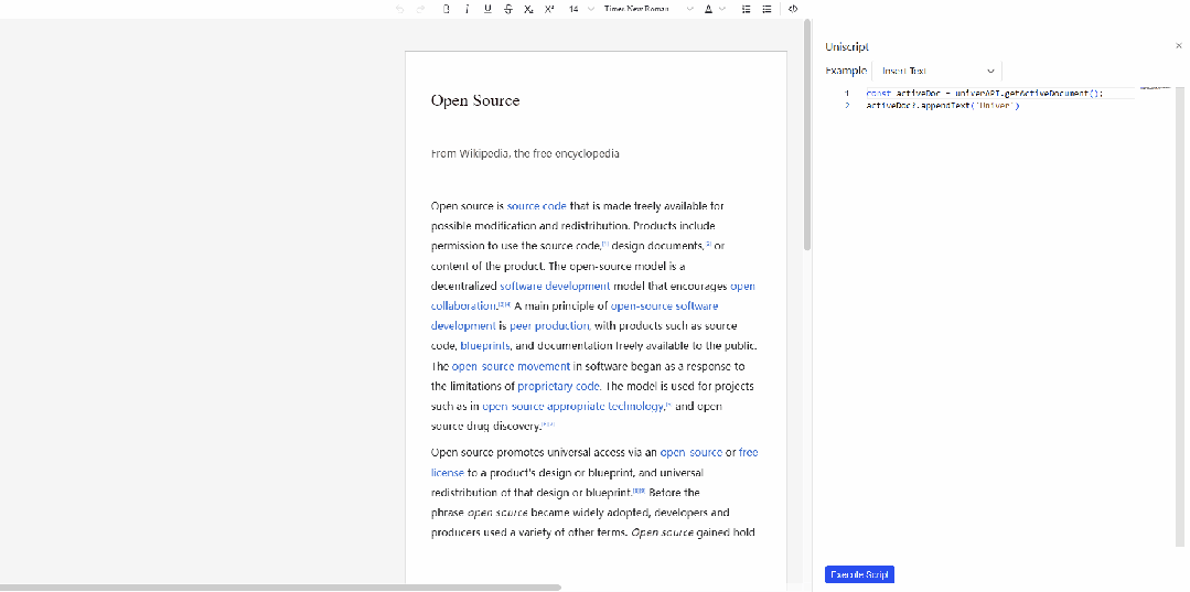 Univer 基于 canvas 的 渲染引擎,能够高效地渲染不同类型的文档。它允许用户在无需重新创建整个应用的情况下,实现自定义功能、集成第三方插件和服务。