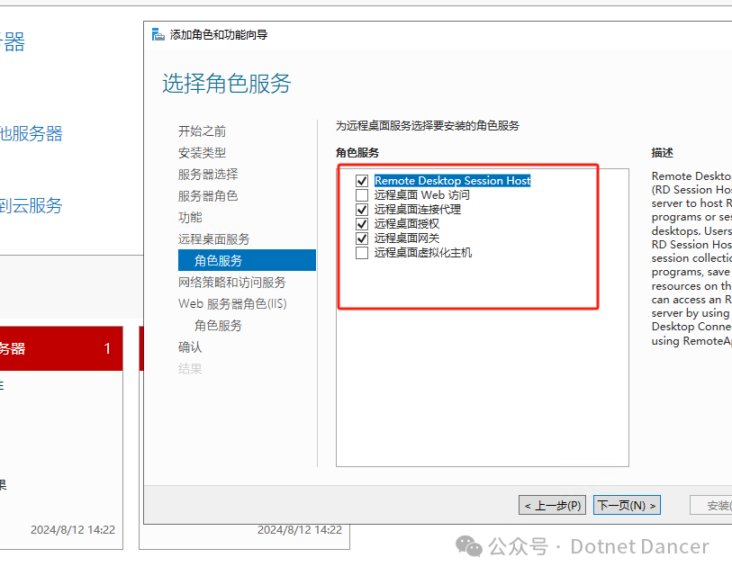服务器配置:添加用户和功能里面,勾选 远程桌面服务