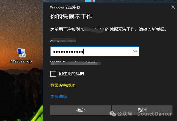 把rdp文件拷贝到可以连接到该服务器的客户机上,双击即可访问,输入远程服务器密码以后,自动会在本地启动上面的VS2022程序。