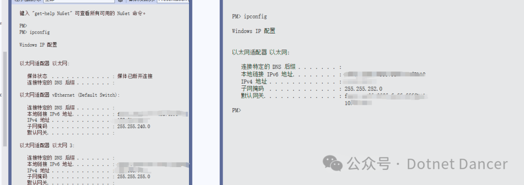 本地打开远程的VS没有任何违和感,但是通过一些信息,例如查看IP配置,可以看到远程就一个卡,本地有多个卡。