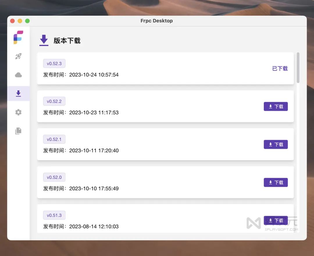 另外,在软件里,它也能帮助你快速下载到 frpc 客户端本体 (命令行) 的最新版本以及过往的版本,而不必你手动去下载。