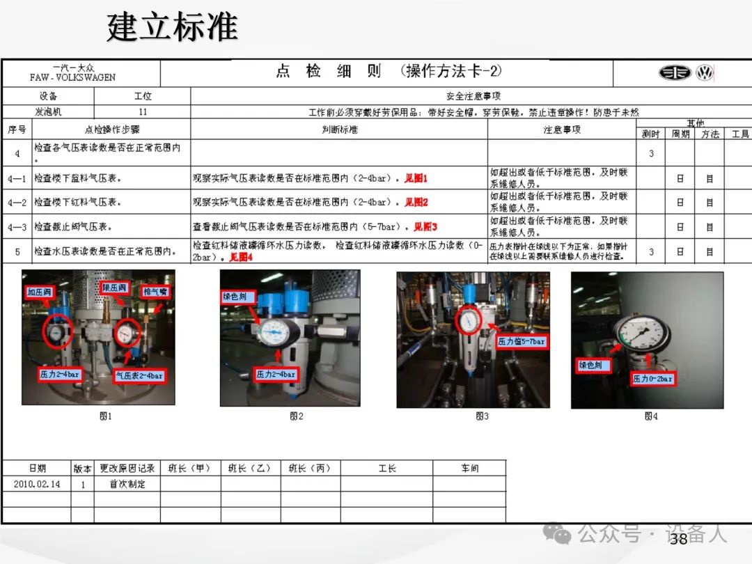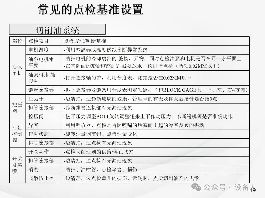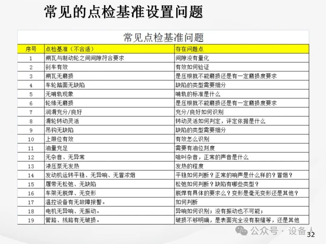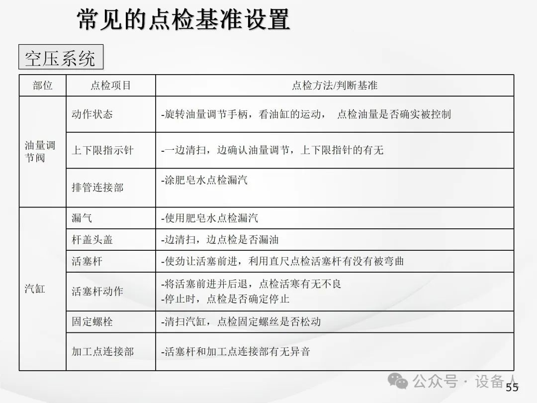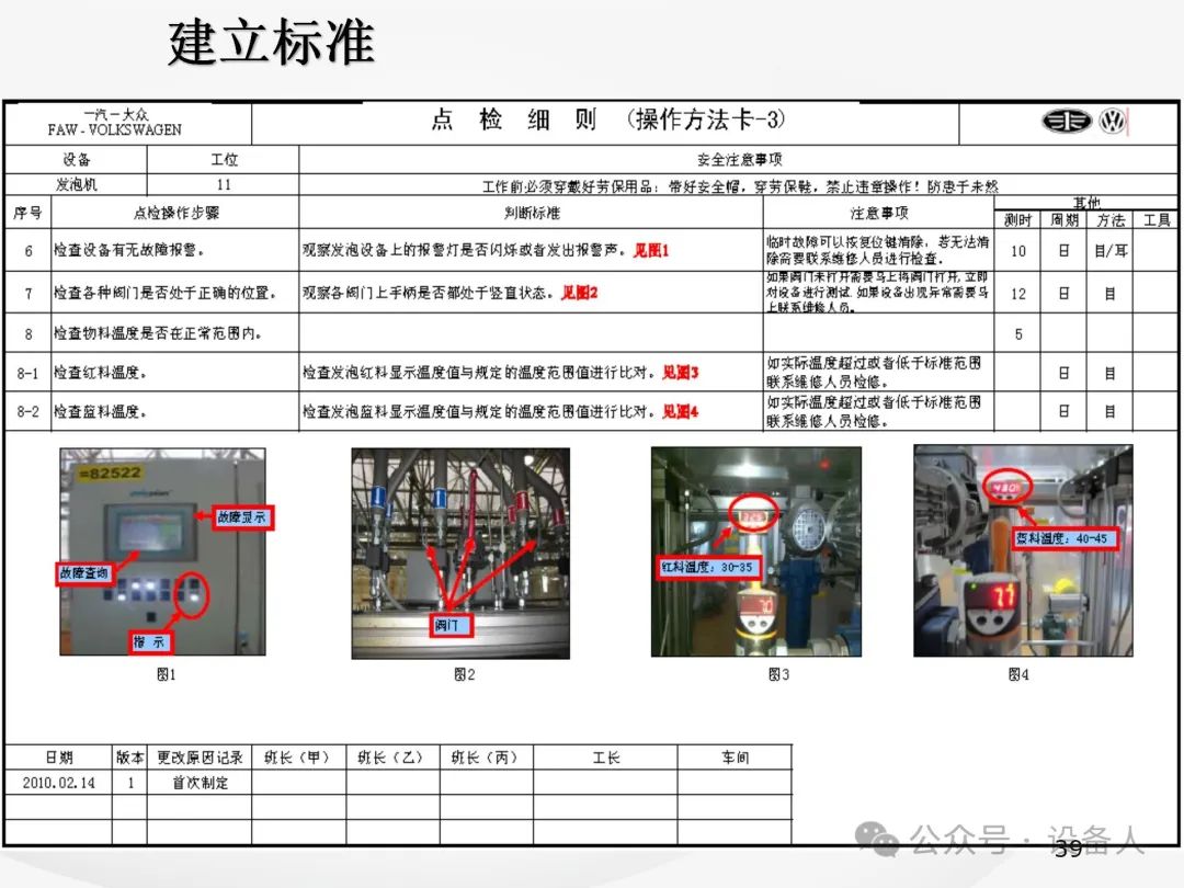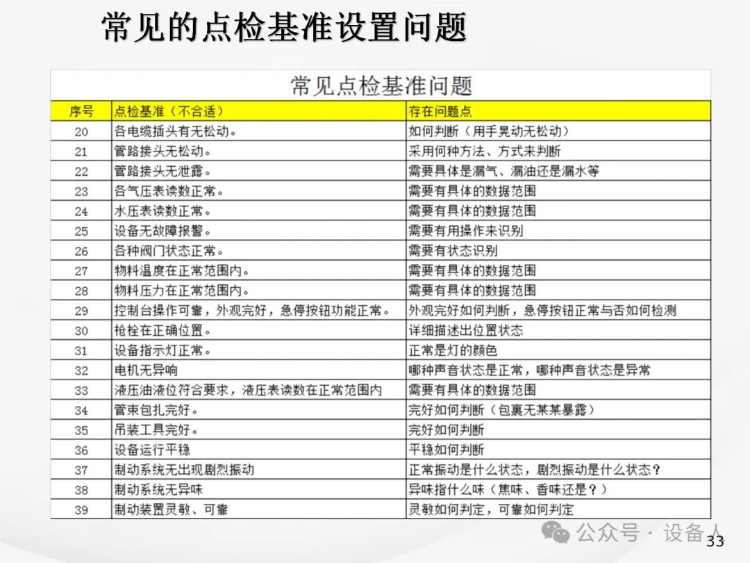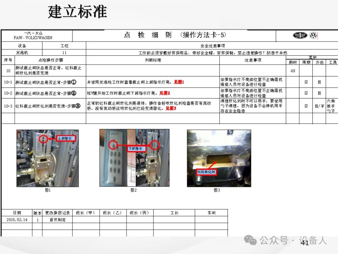 为了维持生产设备的原有性能,通过人的五感(视、听、嗅、味、触)或简单的工具、仪器,按照预先设定的周期和方法,对设备上的规定部位(点)进行有无异常的预防性周密检查的过程,以使设备的隐患和缺陷能够得到早期的发现,早期预防,早期处理,这样的设备检查称为点检。