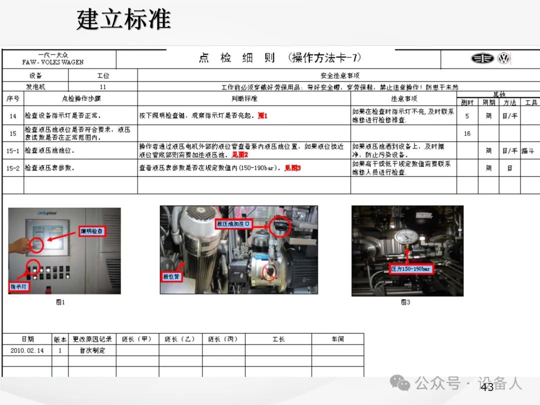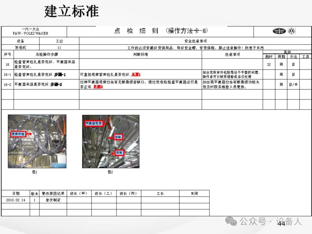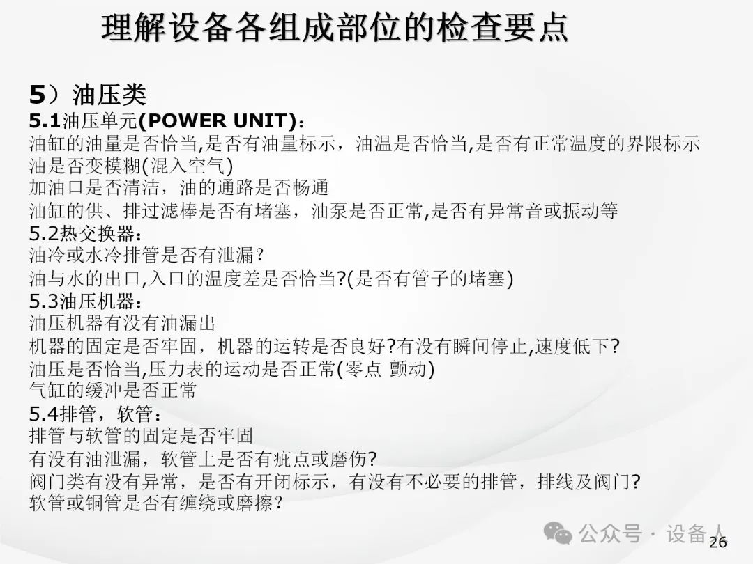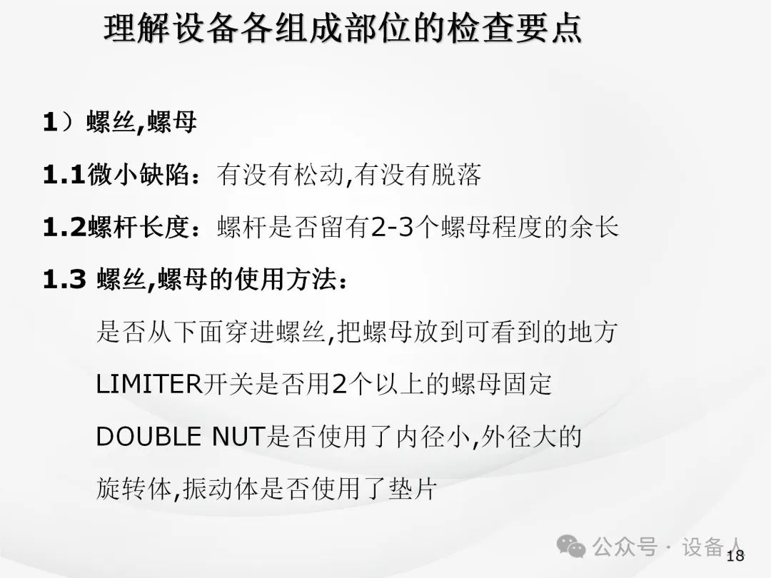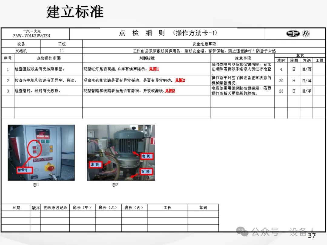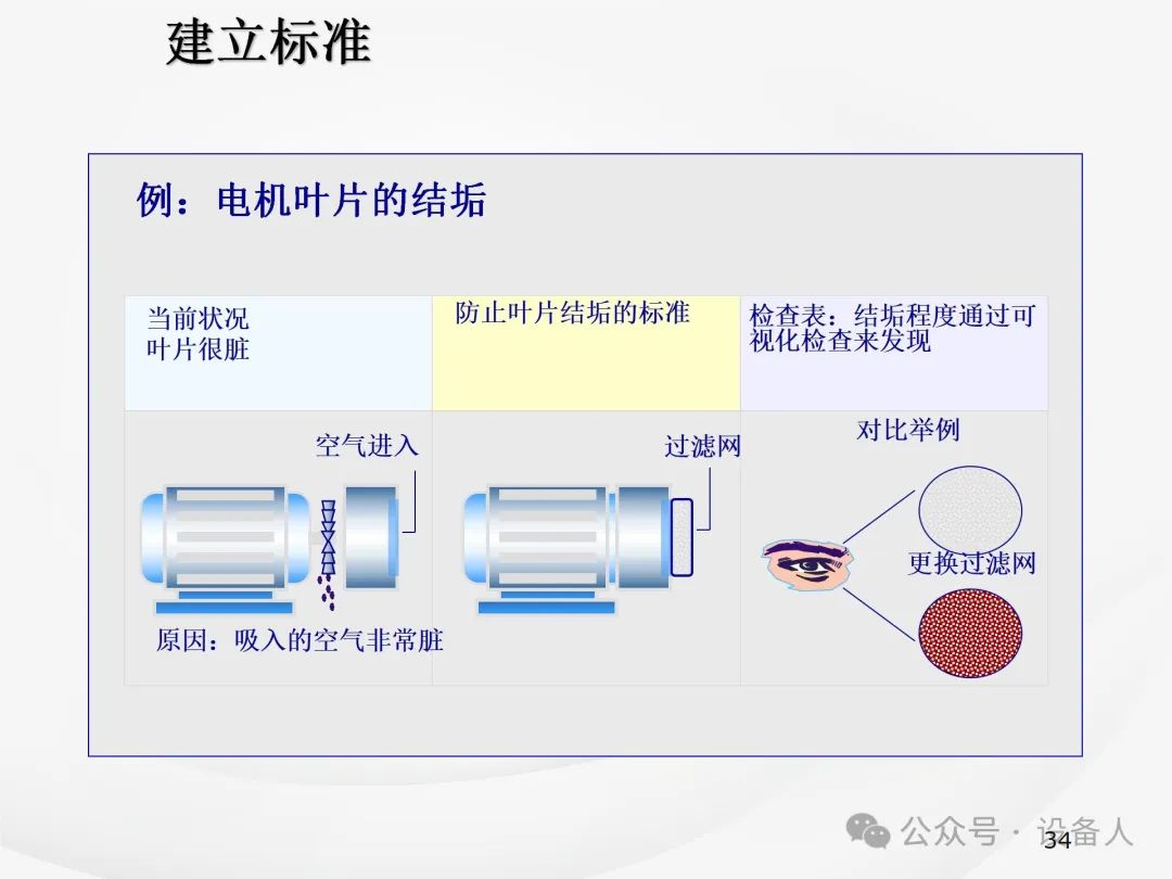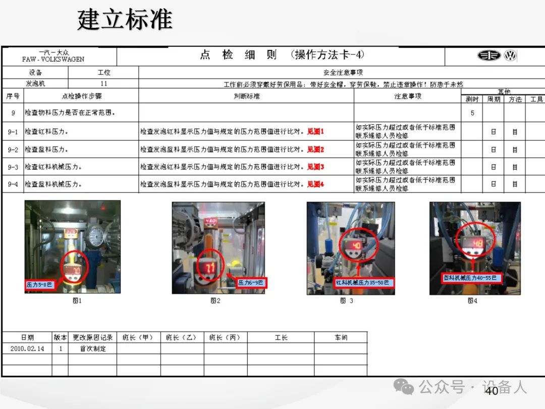 为了维持生产设备的原有性能,通过人的五感(视、听、嗅、味、触)或简单的工具、仪器,按照预先设定的周期和方法,对设备上的规定部位(点)进行有无异常的预防性周密检查的过程,以使设备的隐患和缺陷能够得到早期的发现,早期预防,早期处理,这样的设备检查称为点检。