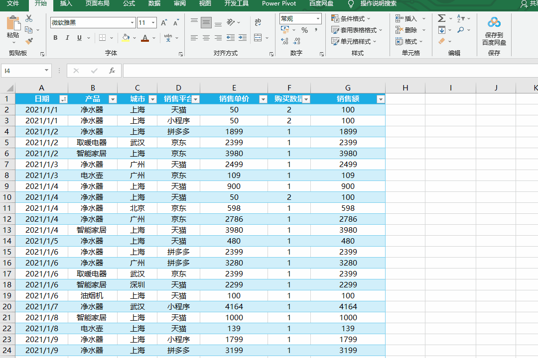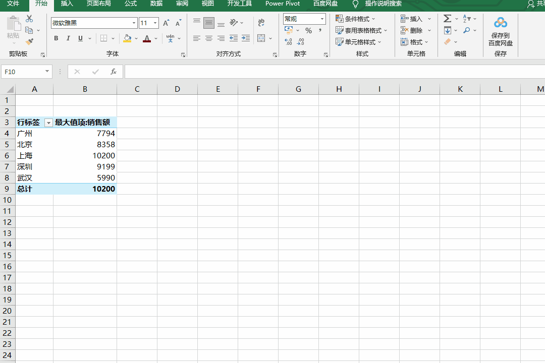 选择到数据源,插入数据透视表,汇总依据选择求和。轻松求出了每个城市的销售额。