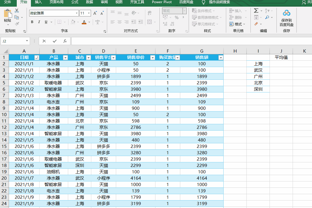 使用AVERAGEIF函数,求出每个城市的每个订单的平均销售额。