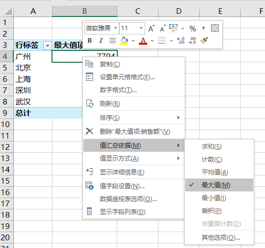 数据透视表主要有5个常见汇总依据:1.求和;2.计数;3.平均值;4.最大/最小值,5.乘积。