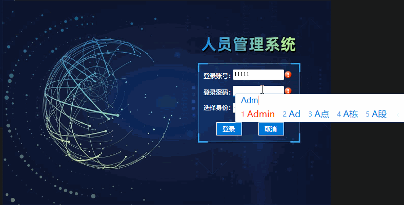 在之前的界面中添加一项【选择身份】,用来选择是管理员登录还是普通用户登录。