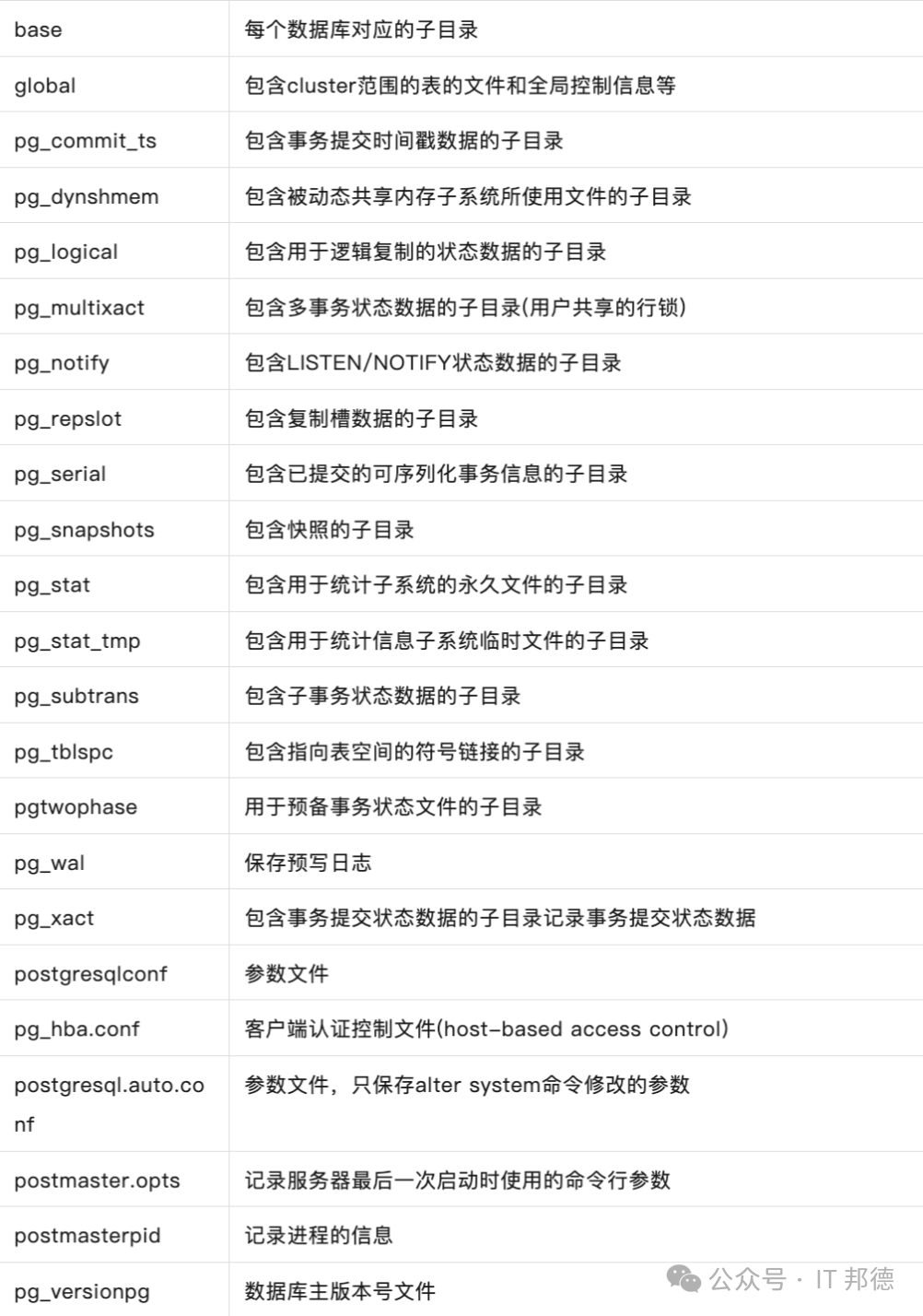 PostgreSQL的数据目录,其中保存着配置文件、数据文件、事务日志和WAL日志等重要文件,所有用户创建的数据文件和初始配置文件都可以在数据目录中找到,在PG中一切皆目录