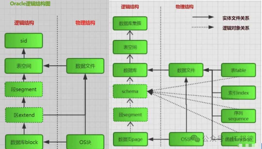 上面左边是Oralce的逻辑架构,右边是PG的逻辑架构,很明显了吧!