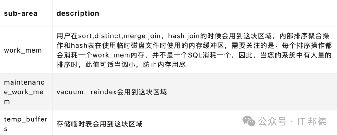 本地内存区域(Local mermory area):每个后端进程分配供自己使用(用户服务)