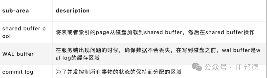 shared buffer pool类似于Oracle的database buffer cache。其大小由shared_buffers参数决定。