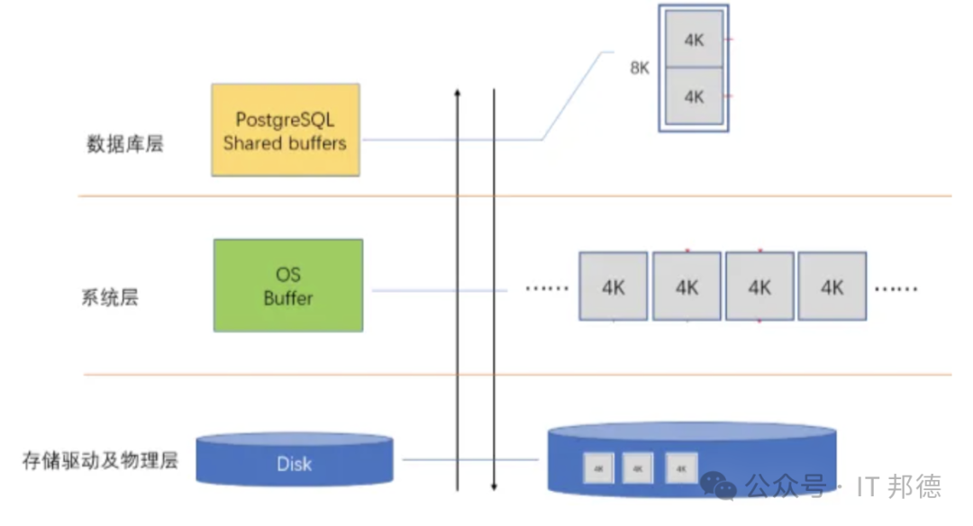 PostgreSQL数据库使用双缓存写数据,shared_buffer + OS page cache,下图是PG与OS内存交互的过程。