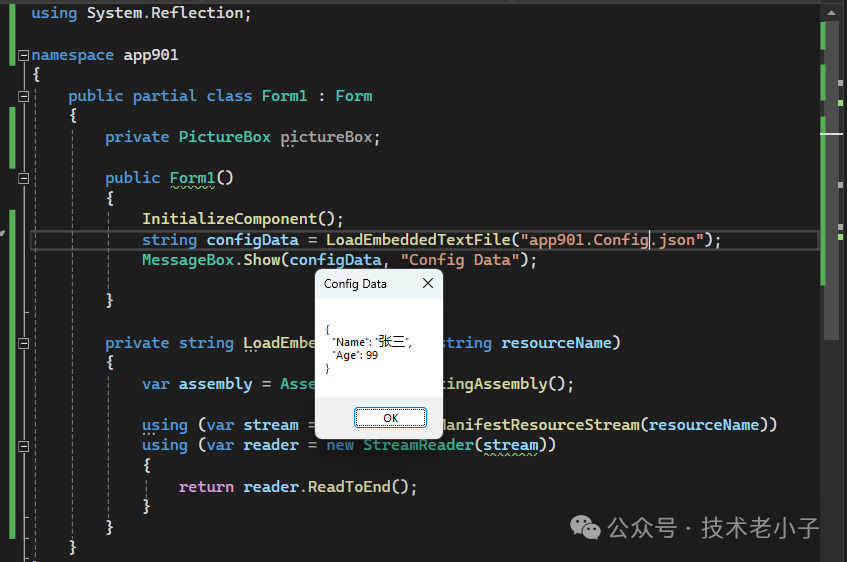 假设我们有一个名为 config.txt 的文本配置文件,我们将其嵌入到 WinForms 应用程序中。
