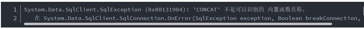 ''CONCAT'' 不是可以识别的 内置函数名称。