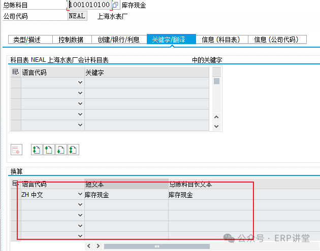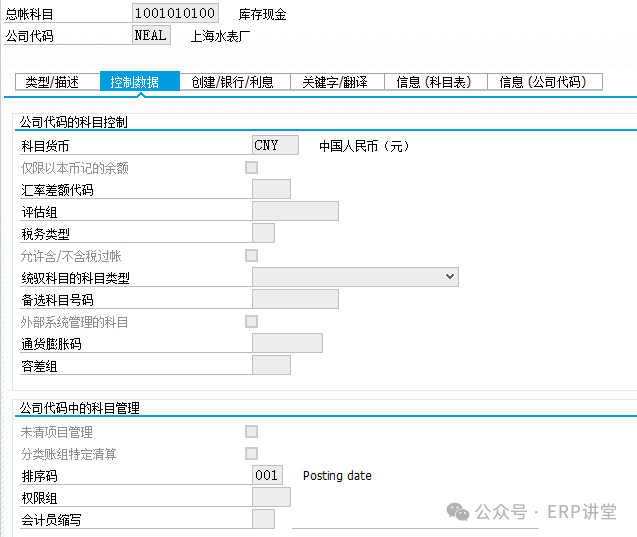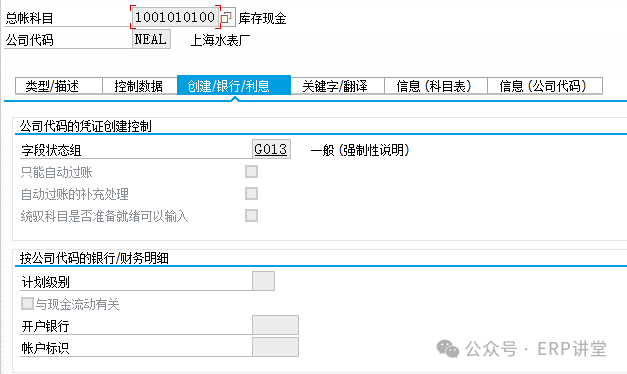在 SAP 中,会计科目的定义分为两层:科目表层和公司代码层。比如:一个集团企业可以定义一套会计科目表,但是下面的每个公司代码,从中选择哪些科目,这些科目的各项参数又是可以自己决定的,从而达到集中和灵活兼顾的效果。 根据总账科目类型SAP的科目类别分为四大类别: N:营业外收支:损益类科目,不需要成本对象;营业外收入,营业外支出,所得税,以以前年度损益调整,资产减值损失,信用减值损失,资产处置损益,财务费用; P:初级成本要素:损益类科目,需要成本对象;成本和费用类科目 X:资产负债表科目:资产,负债,所有者权益科目; S:次级成本要素: 21 内部结算-用于成本对象间的相互结算,比如吧内部订单归集的费用汇总结转到成本中心; 31 订单/项目结果分析-用于将结果分析的数据保存到WBS、生产订单等(比如:生产订单在制品计算使用的成本要素); 41 间接费用率-使用间接费用率功能将附加间接费用从成本中心进一步分配到订单; 42 分摊-分摊循环中使用的成本要素; 43 内部作业分配-通过作业类型进行的费用分摊,主要在生产订单报工时使用,用于将成本从成本中心结转到生产订单等成本对象; 科目组: a. 科目的分类 b. 决定了科目的号码范围; c. 决定了科目主数据维护界面的字段状态(即科目主数据中,哪些显示、隐藏、可选) 科目货币:如果维护和公司本位币一致,在会计凭证中可以使用任意货币过账;如果维护本位币以外的科目,这只能使用维护的货币记账; 仅限以本位币记的余额:如果选择该标识,系统只显示本位币的余额,不显示外币余额; 税务类型:控制财务凭证中税码字段允许输入的税码 空:税码在行项目中不显示 +:仅允许销项税,该科目只能和销项税税码一起过账(可以输入0税率的销项税码) -:仅允许进项税,该科目只能和进项税税码一起过账(可以输入0税率的进项税码) >:与 +逻辑相同,但是不能输入0税率的销项税码 <:与 - 逻辑相同,但是不能输入0税率的进项税码 特定税码:该科目只能使用指定的税码过账 允许含/不含税过账:如果选中,则该科目过账是可以不输入税码,否则必须输入税码; 统御科目的科目类型:用于连接子分类账和总分类账的桥梁,其实,就是供应商主数据、客户主数据、资产卡片对应的会计科目;SAP生成应收、应付、固定资产凭证时,不是直接记在会计科目上的,是记在客户编码(应收)、供应商编码(应付)、资产卡片(资产)上。通过客户、供应商、资产卡片等主数据中的统驭科目(就是会计科目),来实现子分类账与总分类账的连接;统御科目无法直接记账; 备选科目号码:a. 关联国家科目表的科目;b. 作为附加信息,科目发生变更,可以在新课的此栏位备注旧科目号,方便查询; 未清项管理:对于需要进行清账管理的科目,需要选中改标识(GRIR,发出商品,银行清算科目);统御科目默认为未清项管理,不需要选中;对设有未清项管理功能的科目,系统会有一个是否结清状态,并以红灯、绿灯标记某一行项目是否结清;绿灯表示已结清,红灯表示未结清; 排序码:凭证过账时,会基于排序码的内容,填充凭证行项目“分配”字段。例如,排序码是过账日期,凭证行项目“分配”字段,内容就是过账日期; 成本要素类别:如果总账科目类型选择了P和 S,这里需要输入对应的成本要素类别; 字段状态组:控制会计凭证录入时,行项目字段状态; 只能自动过账:选中该标识,无法手工做账,只能通过系统集成过账,材料类科目,GRIR,发出商品,主营业务收入与主营业务成本等; 统御科目是否准备就绪可以输入:对统驭科目记账时是否可以更改,在过账时可以手工更改需要统驭科目;(需要后台配置对应关系); 开户行/账户标识:如果该科目时银行账户科目,可以设定关联的开户行和账户; 维护科目不同语言对应的描述; 会计科目相关数据表:SKAT(描述),SKA1(会计科目表层),SKB1(公司代码层);