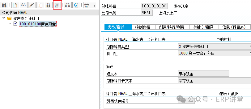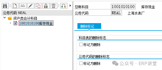 公司代码的删除标志:选中后下次运行归档时自动删除公司代码层级的科目主数据。 标记了删除标记的会计科目还是可以进行手工记账的; 如果会计科目新建之后,没有任何计划数据,也没有记账数据,则会计科目可以物理删除(OBR2):