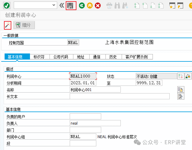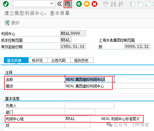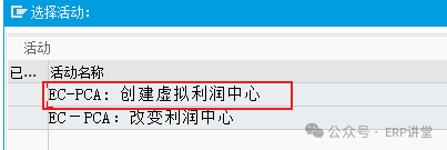 点击保存,之后一定要点击激活; 9.创建虚拟利润中心 事务代码:KE59 系统路径:IMG→控制->利润中心会计->主数据->创建虚拟利润中心 配置目的:创建虚拟利润中心 配置屏幕:
