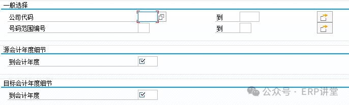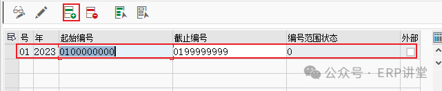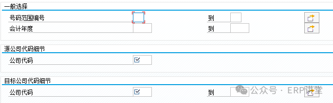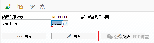 11.定义财务凭证号码范围 事务代码:FBN1 系统路径:IMG→财务会计->财务会计全局设置->凭证->凭证号码范围->定义凭证号码范围 配置目的:设置每个公司财务凭证的号码范围 配置屏幕: 需要知道都使用的凭证类型,并找到凭证类型对应的凭证编号,然后维护对应的凭证号码范围; 内部编号必须是数字范围,由系统自动生成流水码,外部编号石过账时由用户手工输入,可以包含字母和数字。 复制到公司代码:OBH1 复制到会计年度:OBH2