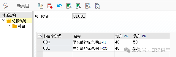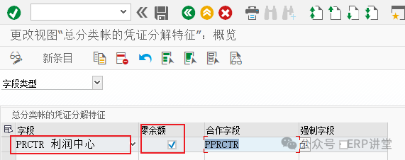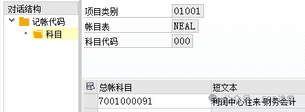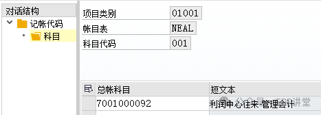 4.定义总账会计核算的凭证分解特征 事务代码:SM30 - V_FAGL_SPLIT_FLD 系统路径:IMG→财务会计->总账会计->业务交易->凭证拆分->定义总账会计核算的凭证分解特征 配置目的:定义凭证分割的特征维度 配置屏幕: 字段:凭证分割的维度 零余额:确保该特征下凭证借贷平衡; 合作字段:系统为了达成零余额而生成的附加行项目中,记录原始发送方或者接收方的关系;(利润中心合作伙伴) 强制字段:是否要求利润中心为必须输入的字段; 5.定义零余额清算科目 事务代码:SM30 - V_T8G30A 系统路径:IMG→财务会计->总账会计->业务交易->凭证拆分->定义零余额清算科目 配置目的:维护凭证拆分零余额拆分时使用的中间科目 配置屏幕: 000:财务凭证记账时,零余额分割时使用的中间科目; 001:CO凭证记账时,零余额分割时使用的中间科目; 选中000,或者 001,双击“科目”: 这里维护的科目一般在新建的时候,要选中只能自动记账;000 和 001 中可以维护相同的科目,也可以维护不同的科目;