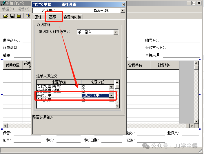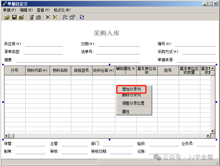 问题描述: KIS专业版的采购入库单中标准字段没有含税单价和价税合计,企业实际管理中部分客户需要在采购入库单上增加含税单价和价税合计,方便实际的业务管理。