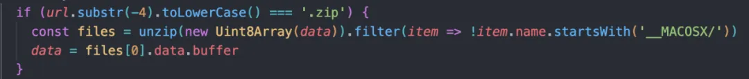 于是我们使用jszip,资源加载完成后判断资源的后缀,如果是zip文件就使用jszip进行解压缩。