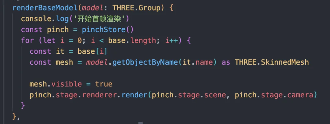 但是这样的方法只能让用户感受起来没那么卡顿,该等的时间一点没少,过长的等待时间还是会让用户等的不耐烦,有没有其他解决卡顿的方式呢?这就要从Three.js的渲染逻辑来进行分析了。 5.2 缩短首帧渲染的时间由于我们做的是一个捏脸的项目,通过形态键来实现不同的脸型,表情等表现。在Three.js中存储形态键信息的属性在geometry.morphAttributes中,形态键存放的顶点信息总数与网格的顶点数相同,这就意味着同一个模型有多少个形态键,就额外需要加载多少套网格的顶点信息。在首次渲染的时候Three.js会遍历每一个形态键的顶点信息,生成一个float32array,而这个巨量的遍历操作就是造成卡顿的根本原因。