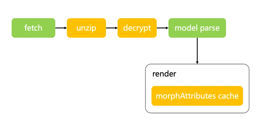 作为一个3D的项目,从用户打开页面到最终模型的渲染需要经过多个流程,加载的时间也会比普通的H5项目要更长一些。然而过长的等待时间会造成大量的用户流失,这部分用户没有体验到具体的功能就退出了页面非常的遗憾,为了提升首屏加载的转化率,需要尽可能的降低loading的时间。这里就分享一些我们在模型加载优化方面的心得。 二、模型加载的优化思路想对加载进行优化,首先需要了解Three.js加载模型时的工作流程,并分析出其中耗时的部分进行针对性的处理。 在Three.js中,模型从加载到渲染需要经过模型下载、序列化模型、网格解析、写入缓存和渲染模型几个步骤,经过分析发现主要的瓶颈在网络请求和网格解析两个部分,所以整体的优化思路就是减少网络请求资源的体积和提升网格的解析速度。