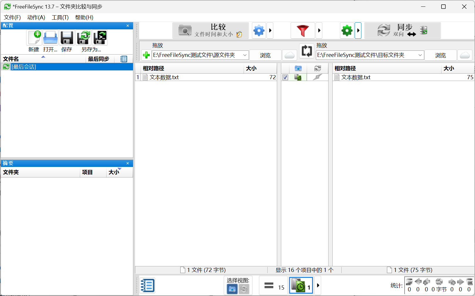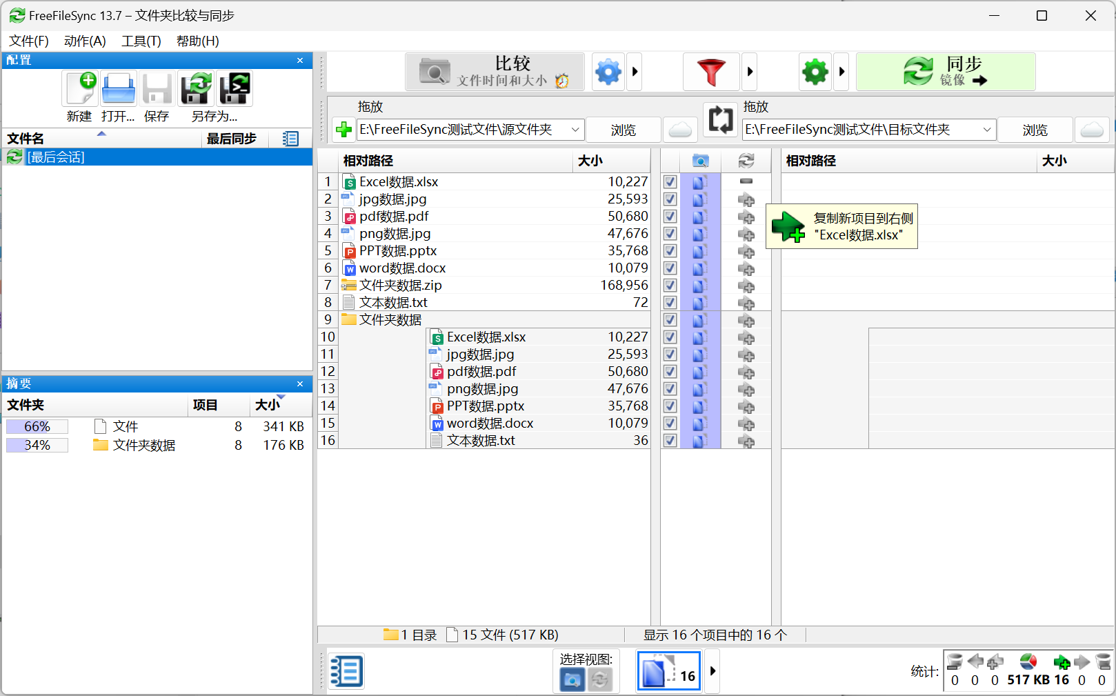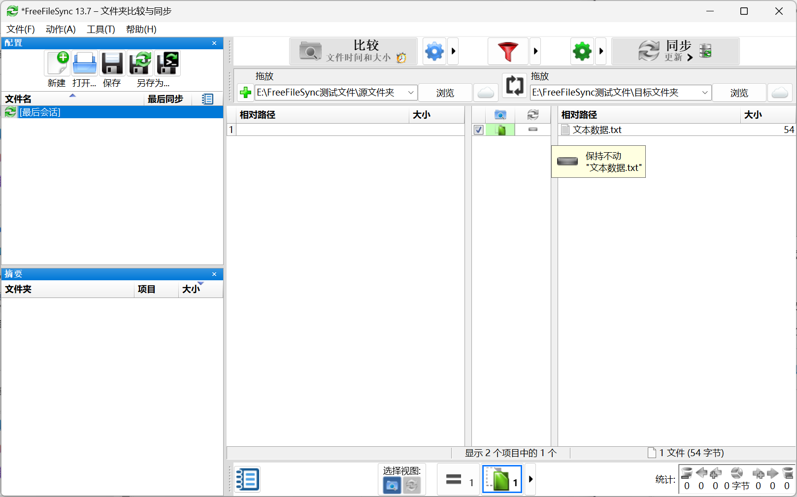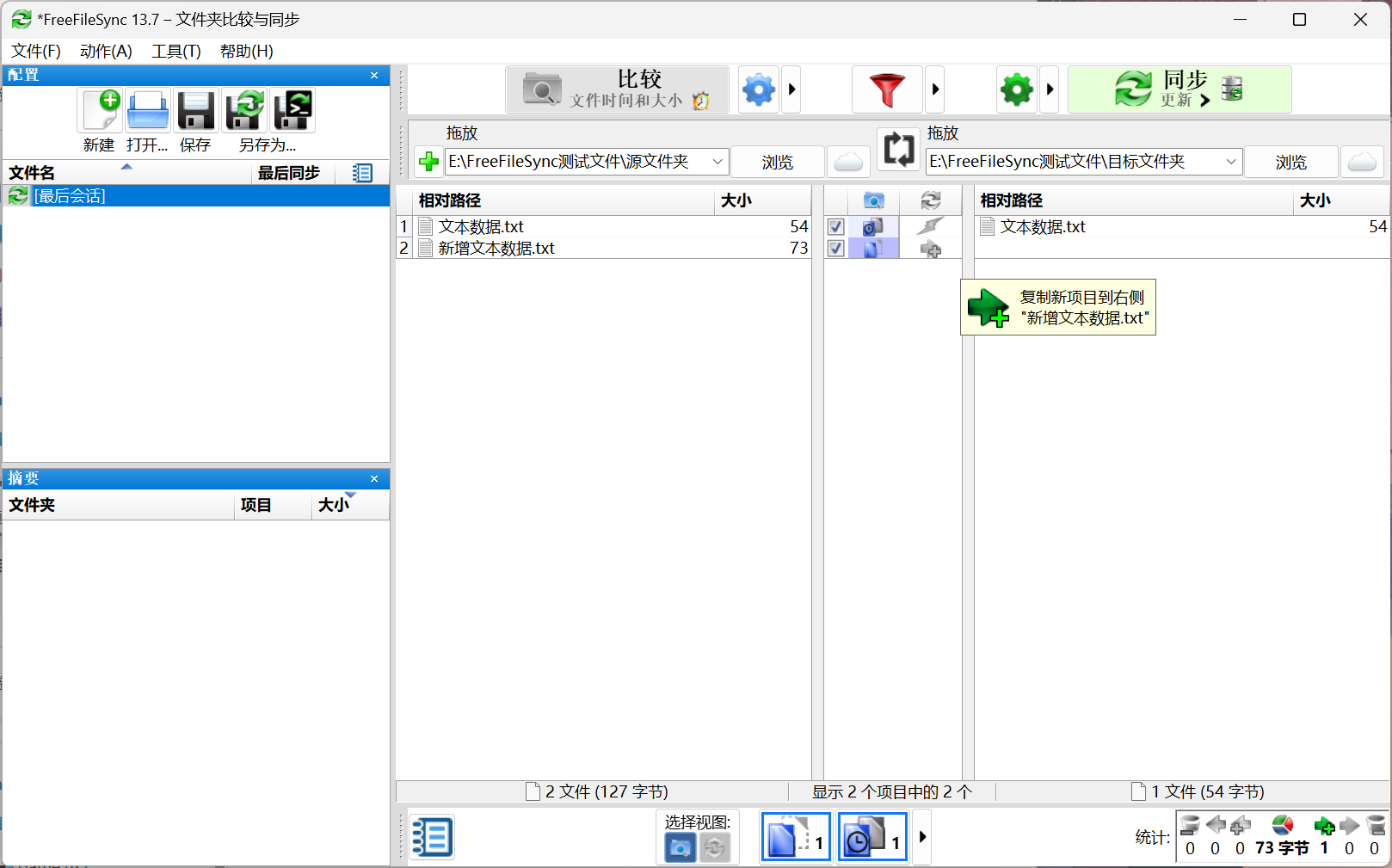 我们发现,软件对新增的文本文件执行的是复制到右侧目标文件夹的操作。