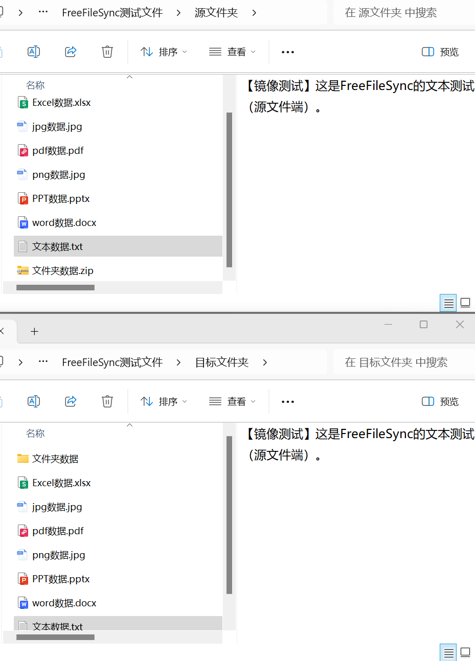 接下来,我们以这两个文件夹为示例,来分别对三种不同的文件同步方式进行演示。