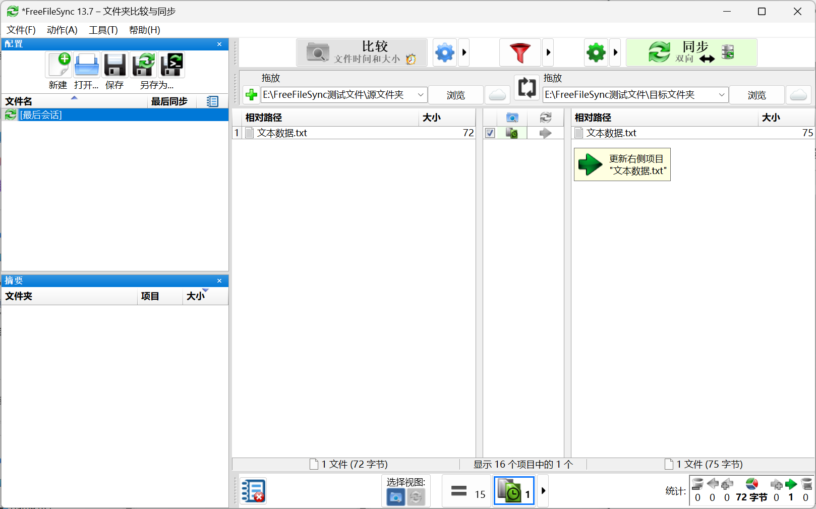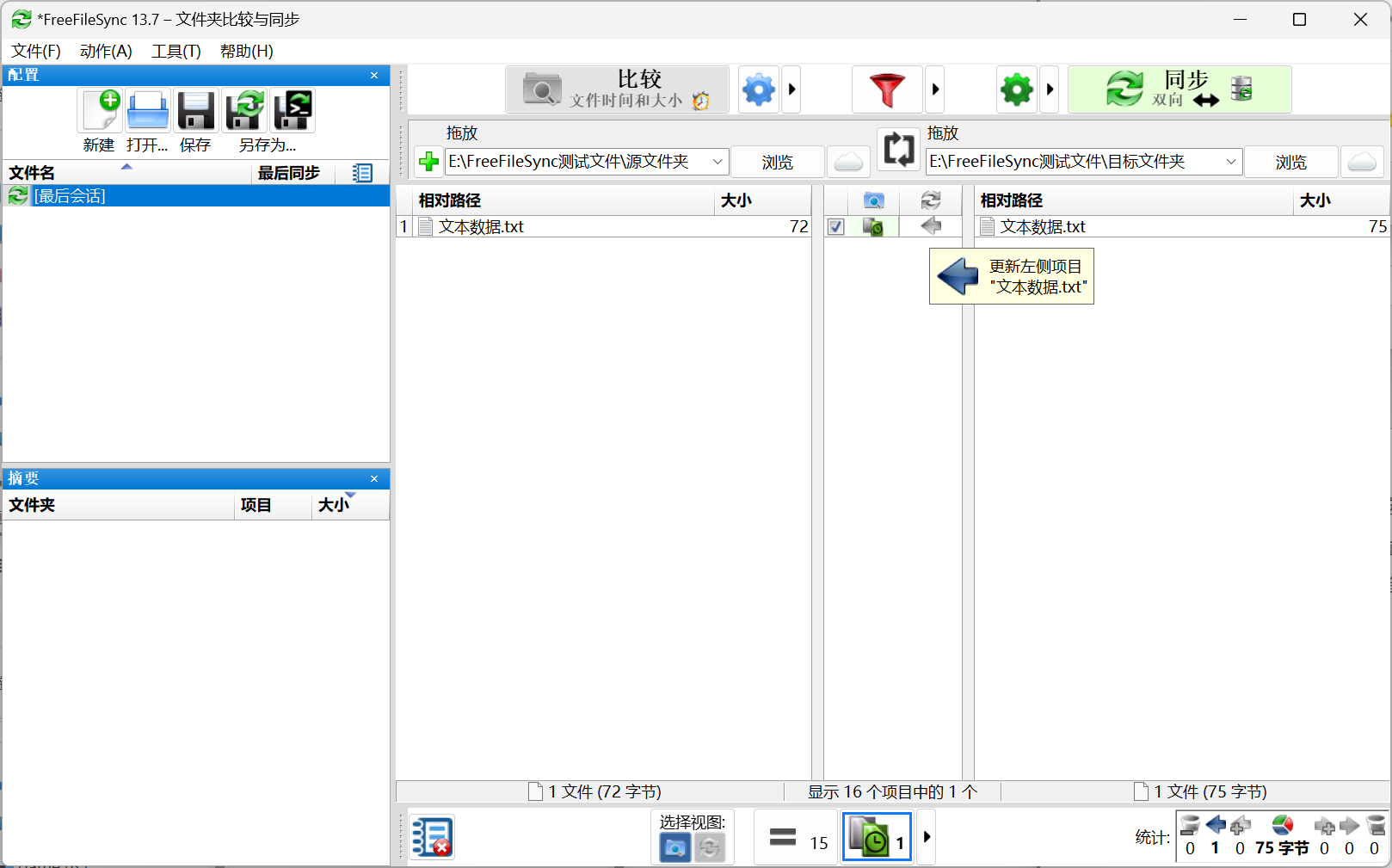此时,我们既可以选择更新右侧数据,也可以选择更新左侧数据,这也就实现了双向同步,即,源文件端与目标文件端均可以对对方执行修改操作。