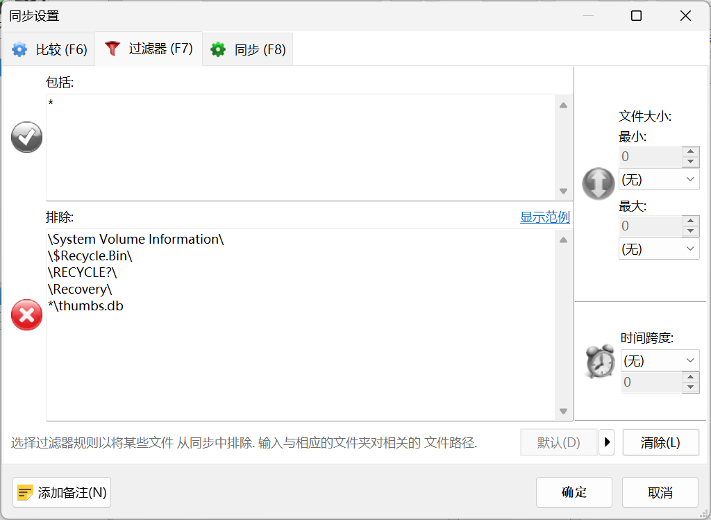 在我们同步过程中,可以通过过滤器来过滤我们需要处理和排除的文件。
