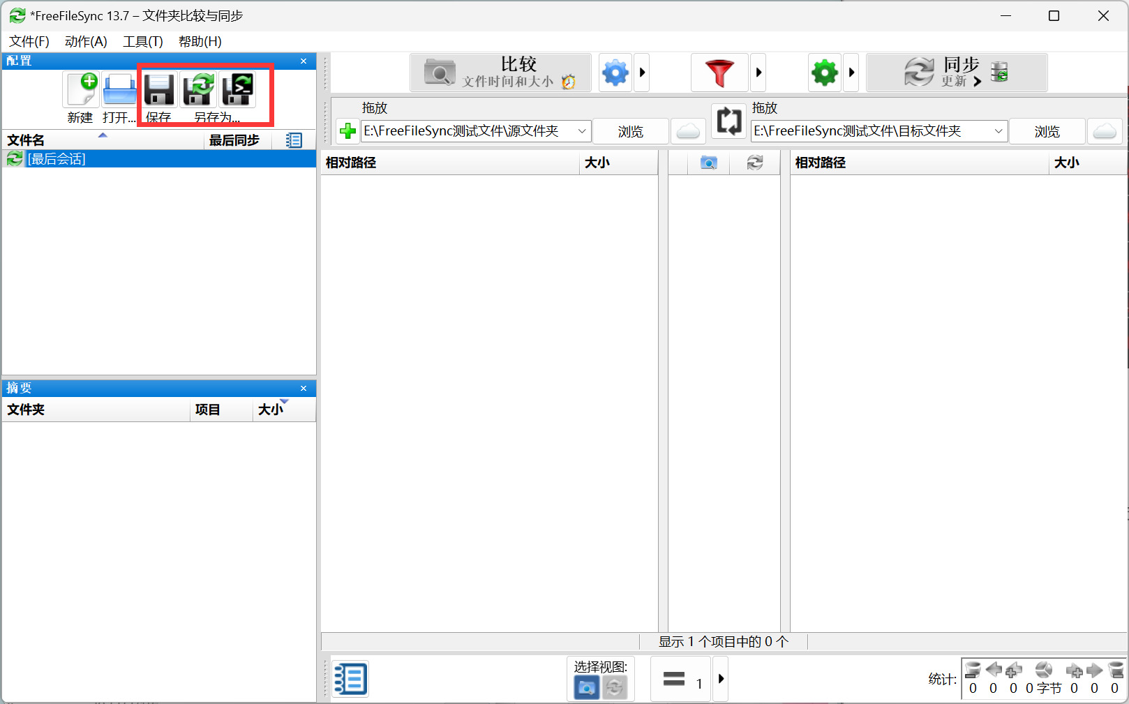在讲解具体功能之前,我们先来了解一下 FreeFileSync 的用户界面。
